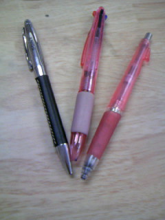 りお昔、3色ボールペン、プラス、シャーペンで1本になってるペンを持ってて、よく使ってました☆